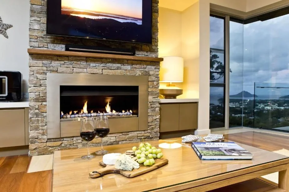 The open plan kitchen, dining and lounge room with gas fireplace opens onto a spacious undercover balcony with outdoor table and chairs. The fully equipped, gourmet kitchen has stone bench tops and top quality appliances, where you can creative the sort of feasts reserved for holidays and special occasions. Of course, if you'd prefer something more casual, a BBQ on the deck will ensure you can enjoy the quintessential Aussie barbie overlooking the water with the outdoor kitchen.