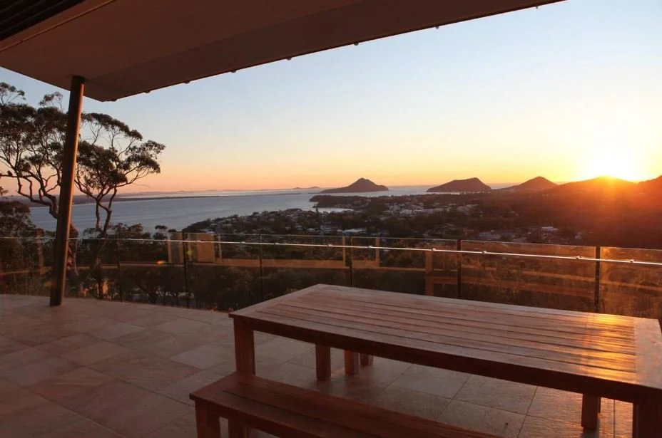 and has stunning views over Port Stephens Harbour and the past the volcanic entrance heads to the Pacific Ocean.